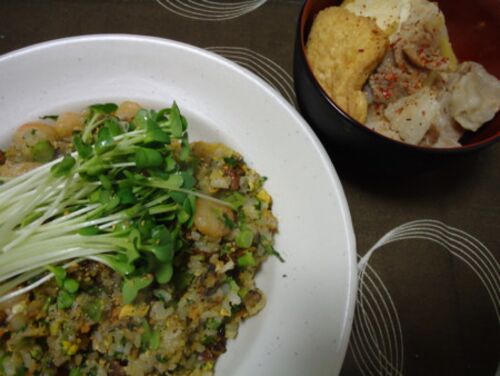 ○チャーハン 菜の花ってけっこう高いのね。一束300円くらいした。まぁ、季節ならではのものだし、たっぷり満喫! あと、チャーハンのコツをメモしておく。 ・具を炒めた後、それらを一箇所に寄せ、火を止め、空いたスペースに卵を投入→すかさずご飯を入れて…
